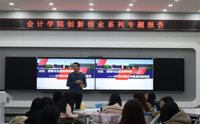 11月22日,91短视频 在新经济(数字经济)创新创业实训中心C202举办创新创业专题系列报告——BP写作范式与路演技能培育,由学校经济学院团委书记骆鑫主讲,学院相关教师、首届“科云杯”创新创业大赛参赛队员以及大四毕业生参加学习。报告会由会计专硕中心主任邵方婧主持。骆鑫系统介绍了行业背景、价值主张、产品介绍、营销计划、战略规划、财务数据等BP写作范式内容,使参会师生对BP写作范式有了更深入的了解,学习和掌握到了...