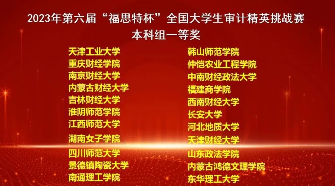 11月18日,2023年第六届“福思特杯”全国大学生审计精英挑战赛成功举办,我校由91短视频 审计学专业袁喻雪、唐小杰、李艳艳组成的代表队荣获本科组一等奖,由91短视频 审计专硕顾海嘉、肖厦婷、刘怡桐组成的代表队荣获研究生组二等奖。审计精英挑战赛重点考察和关注学生对审计专业知识的理解和应用能力,比赛形式包括审计职业素养考察与案例分析考察两个部分,以团队方式进行,采取线下比赛模式。此次大赛共有294所高校,2314支队...