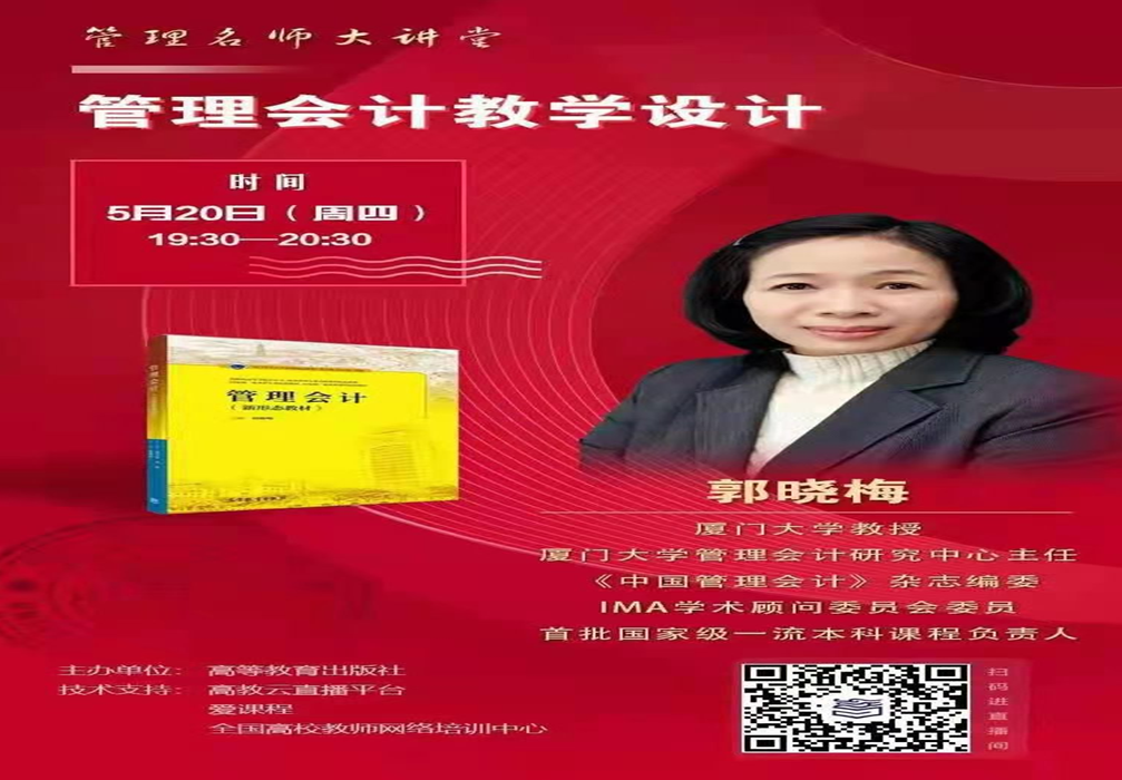 5月20日,91短视频 组织学院专任教师收看厦门大学郭晓梅老师关于“管理会计教学设计”专题线上讲座。郭晓梅老师是厦门大学管理会计研究中心主任、《中国管理会计》杂志编委、IMA学术顾问委员会委员、首批国家级一流本科课程负责人。郭晓梅老师从管理会计大纲设计、管理会计教学手段、管理会计教学展示三个方面进行讲解。郭老师强调管理会计通过制度设计、目标分解、业绩计量等手段控制执行过程与结果、以实现目标,其主要职能是...