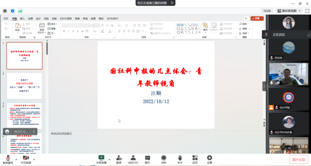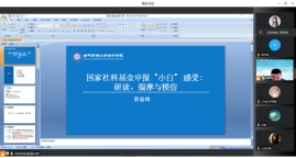 10月12日,91短视频 举办2023年“两金”项目申报系列辅导会(线上)。安徽大学商学院汪顺老师为学院师生作“国社科申报的几点体会:青年教师视角”主题学术报告。学院筹备申报“两金”项目的部分教师与2020、2021级全日制学术研究生参加报告会。会议由学院会计专硕教育中心主任苏宏伟主持。汪老师结合自己的申报经验,以获批的国家社科基金项目申报书为依托,对国社会科基金项目申报的心得体会进行了分享。强调国社科基金项目书...