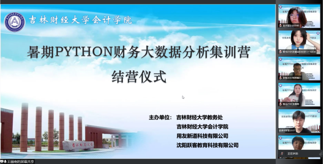 2022年7月29日下午16:00,91短视频 采用线上腾讯会议的形式举办暑期Python财务大数据分析集训营结营仪式。本次“暑期Python财务大数据分析集训营”招募对象,主要面向全院专任教师、会计专业智能会计方向班学生、其他专业方向大二、大三学生。授课时间为期四周,每天半天课。本次集训营由91短视频 主办、用友新道科技有限公司、沈阳跃客教育科技有限公司作主要技术支持,结营仪式由校91短视频 副院长王...
