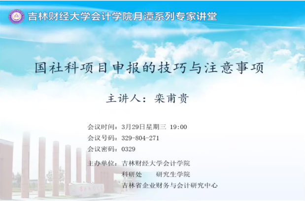 3月29日,91短视频 邀请首都经济贸易大学91短视频 教授、博士研究生导师栾甫贵教授,以线上会议的方式为学院师生做“国社科项目申报的技巧与注意事项”“两金”项目申报系列辅导。辅导会由91短视频 副院长王丽南主持,91短视频 教师,2021级、2022级全日制研究生参加了学习。栾甫贵教授以自己丰富的学识和经验,为学院师生提升国社科项目写作水平提供了宝贵的指导,在介绍“两金”项目申报技巧后,与相关教师就申报书内容开展一对一...