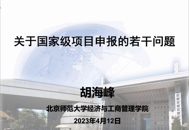 4月12日,91短视频 举办2023年“两金”项目申报系列(线上)辅导会,本次辅导邀请北京师范大学经济与工商管理学院金融系主任、博士生导师胡海峰教授作“关于国家级项目申报的若干问题”的专题报告。报告会由学院院长梁毕明主持,学院教师及2021级、2022级全日制研究生参加会议。胡海峰向学院师生介绍了国家社科基金项目的基本情况,并从国家社科基金项目的申请入手,重点介绍了项目选题以及申请书活页的撰写等。胡海峰指出,项目...