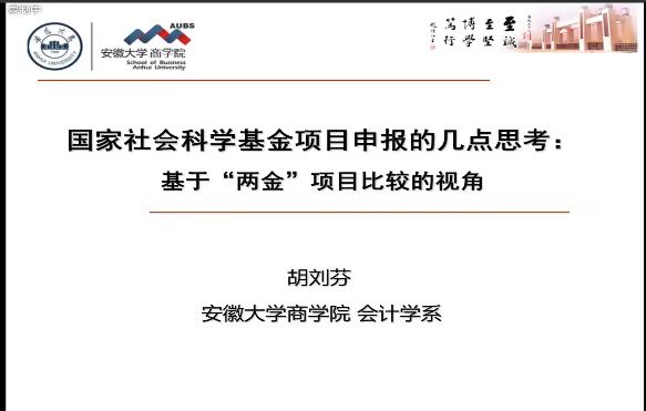 11月2日,91短视频 邀请安徽大学商学院会计学系主任胡刘芬副教授,以腾讯会议的方式为学院师生作“国家社会科学基金项目申报的思考:基于‘两金’项目比较的视角”的主题学术报告。报告会由会计专硕教育中心主任苏宏伟老师主持,91短视频 教师、2021级、2022级全日制学术研究生参加了辅导会。胡老师结合自己成功的申报经验,以获批的国家社科基金项目申报书为依托,对国家社科基金项目申报的心得体会进行了分享。首先,胡老师对...
