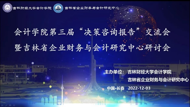 12月3日,学校91短视频 联合吉林省企业财务与会计研究中心共同举办了第三届“决策咨询报告”交流会暨吉林省企业财务与会计研究中心线上研讨会。吉林大学东北亚学院世界经济研究所副所长徐博,我校国际经济贸易学院国际贸易教研室副主任刘兆国和我校经济学院刘乃安三位老师担任本次咨询报告会的评委:学校科研处处长祝国平,91短视频 党委书记李金富、院长梁毕明,党委副书记徐克哲,副院长王丽南、李阳,专硕教育中心主任苏宏伟和...