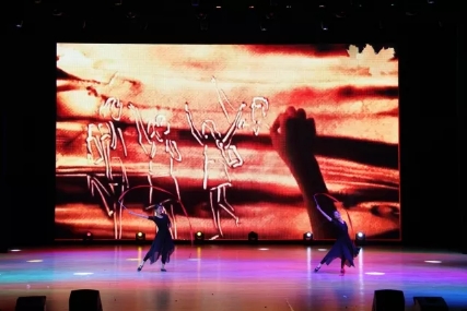 晚会开场是由音乐人协会带来的歌曲——《不再犹豫》。音乐声铿锵激昂,我们的心也随着音乐的旋律舞动。