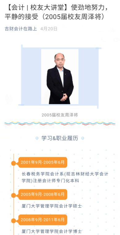 此项活动得到了校友的大力支持,78级校友崔少华和88级校友何俊岩分别为活动撰写了寄语。历届优秀校友纷纷撰文向同学们分享就业经历;安徽大学博导05届校友周泽将教授《使劲的努力,平静的接受》;吉林省中行金融部主任10届校友曲东魁《繁花盛,再一程》;中车长春轨道客车股份财务部14届校友韩东《珍惜当下,把握未来》;吉林大学财务处15届校友孙村惠子《在选择中提升格局,在感恩中砥砺奋斗》;华为公司原长春市十佳大学生16届校友李金鹏《春风得意马蹄疾,我辈岂是蓬蒿人》;北京悦读文化传播有限公司创始人16届毕业生柴思宇《我的创业二三事》;华为技术有限公司19届优秀校友李才寓《竹杖芒鞋轻胜马,谁怕?一蓑烟雨任平生》;中国石油天然气集团审计服务中心的16届校友解宏升《求职心得经验分享》;中化集团中国金茂控股集团有限公司17届校友于涵《成长分享与职业规划建议》共10名优秀校友为毕业生就业进行了云指导。