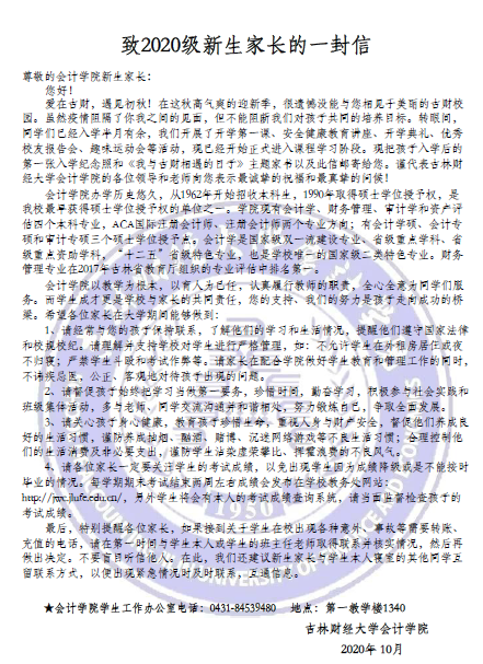 受疫情影响,2020级新生家长没有走进美丽的吉财校园,91短视频 的老师和家长们也没能像往年一样面对面交流孩子的培养目标和培养方式。为加强家校联动,91短视频 开展了“一封家书”家校联动主题教育活动。活动初期,我们为每一位2020级新生同学拍照并打印出来作为入学纪念。同学们以《与吉财初遇的日子》为主题手写一封家书,表达对亲人的思念及近一个月在学校的收获和感悟。有些平时想说却又不好意思当面说出口的话,同学们可以在信中尽情抒发自己的情感,增进与父母的感情,拉近与家人的距离。
