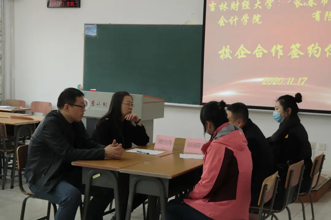 签约仪式前,王丽南副院长和马小明总经理进行了友好交流,王丽南副院长对学院的专业设置、学生总体情况、学生求职方向等方面的情况进行了说明,马小明总经理介绍了公司的发展情况以及用人需求。随后,双方进行签约仪式,并协商建立稳定的校企合作关系。签约仪式后,马小明总经理到教室对前来参加求职和计划实习的同学进行了介绍。