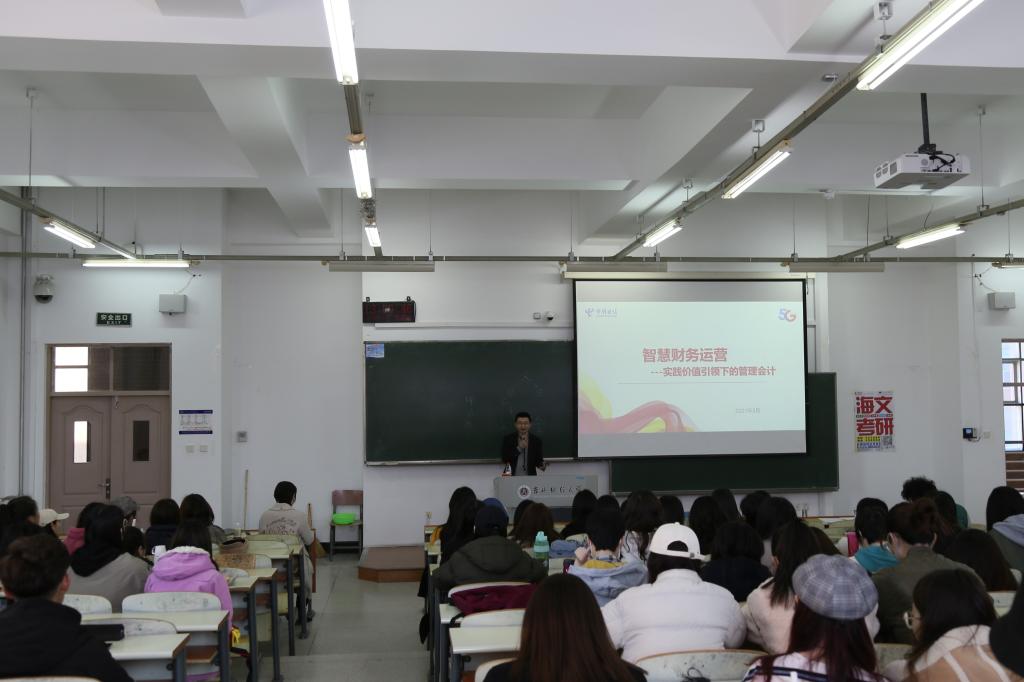 首先,周宇老师为同学们讲述了我国的“十四五”规划和到2035年我国基本实现社会主义现代化的远景目标。周老师阐释了随着改革开放的发展,现代化概念也有所变化,中国现代化本质上是以人民为中心的全面发展现代化,具有四大基本因素,即现代化因素、社会主义因素、中国因素、绿色因素。随后,周宇老师通过“管理会计体系”和“智慧财务运营”两方面内容展开了今天的报告。其次,周宇老师详细介绍了管理会计体系包括预算管理、绩效管理、成本管理、营运管理、风险管理、战略管理和投融资管理,并强调管理会计最重要的原则是业务融合原则(又称业财融合原则)。随后,同学们意识到在大数据信息时代,提高搜集信息效率,培养信息整合能力非常重要。最后,在讲座结束之时,周宇老师建议同学们主动学习、主动提升自己,并且向同学们推荐了从德国引进的SAP软件。此外,周宇老师鼓励同学们在日常生活中多积累素材案例,多进行深入思考,这样才能成为一名优秀的管理会计人员。