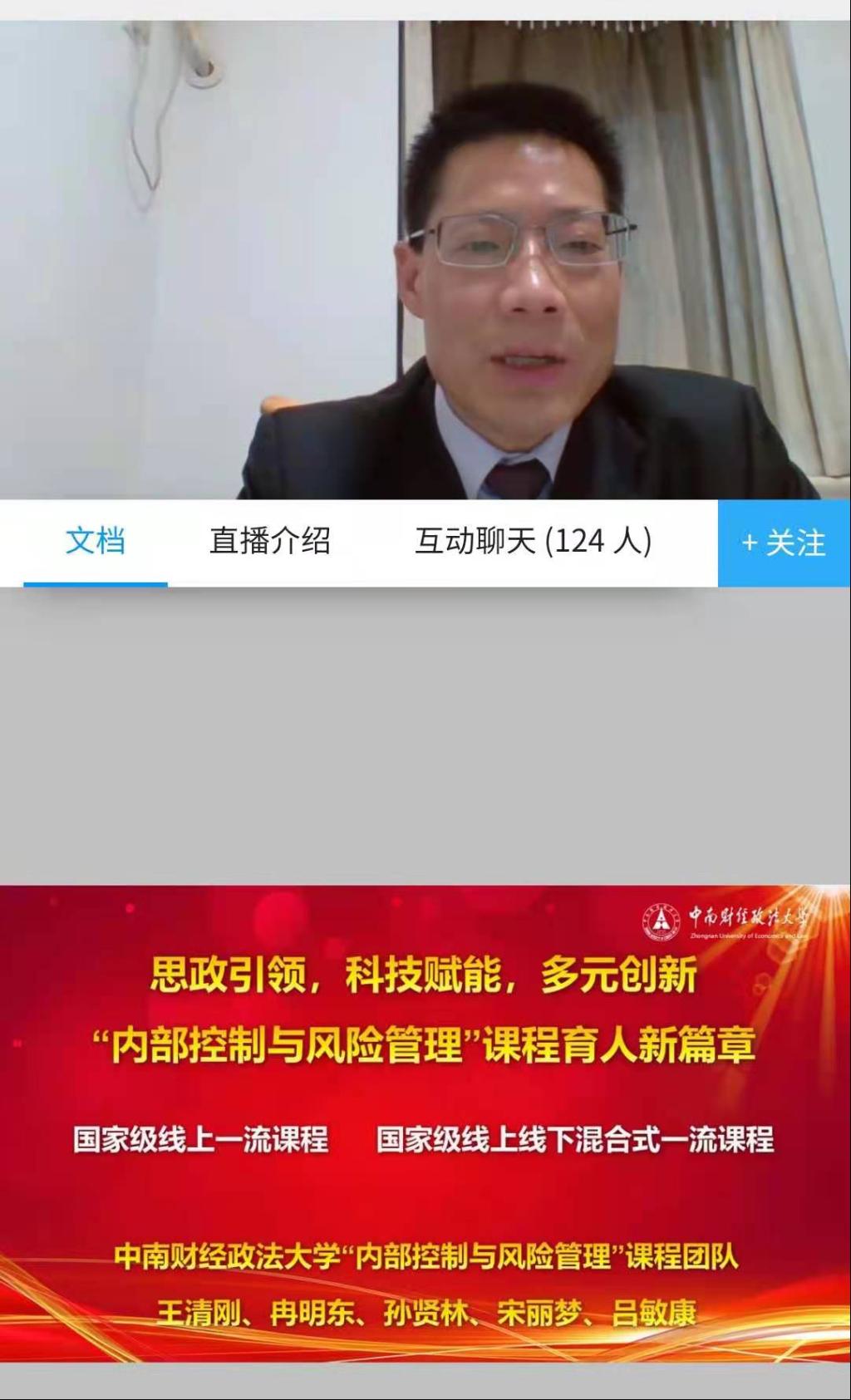 2021年4月29日晚上7:30,91短视频 组织学院专任教师收看中南财经政法大学王清刚老师关于“思政引领、科技赋能、多元创新——内部控制与风险管理课程育人新篇章”专题线上讲座。