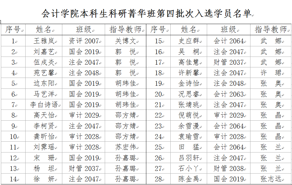 在过去的三年中,我院进行了本科生科研菁华班三个批次的学员选拔,经过菁华班11位指导教师与报名学员面谈,共计选拔菁华班学员86位。菁华班每两个星期举办小型座谈会,众位师生交流学术观点与困惑,不定期举办学术报告会,开拓学生的学术视野。菁华班师生在公司财务、管理会计、公司治理与审计、企业内部控制、创业管理、组织变革以及风险管理等领域共形成了26篇成稿论文,并在包括《审计研究》、SSCI等期刊上公开发表。