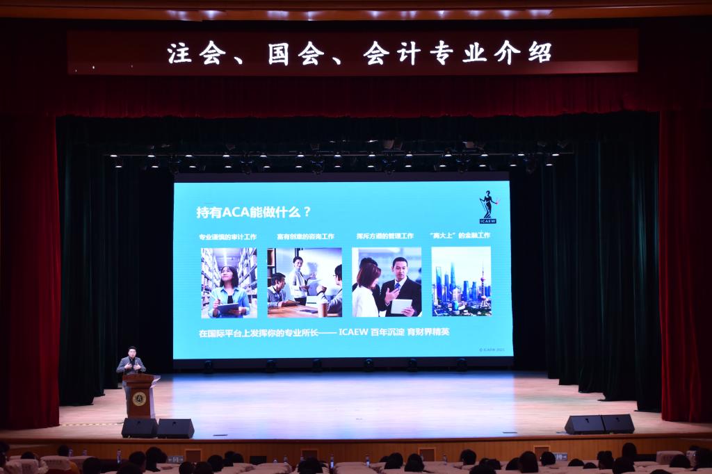 就业规划与职场网络体验。鉴于新生们对未来的规划不够清晰,我院邀请到黑龙江珍宝岛药业股份有限公司招聘经理葛嘉和财务副总监杨兆东、海信集团财经人力资源部人力资源开发经理唐会、长春万科招聘合伙人孟鑫月共四位嘉宾分别以如何做好职业生涯规划为题为新生同学做了报告。之后,被推免到吉林大学攻读硕士研究生的2021届毕业生齐雨竹同学为新生分享了自己大学四年的学习经历和推免经验,她希望大家能够珍惜大学时光,勤奋上进。