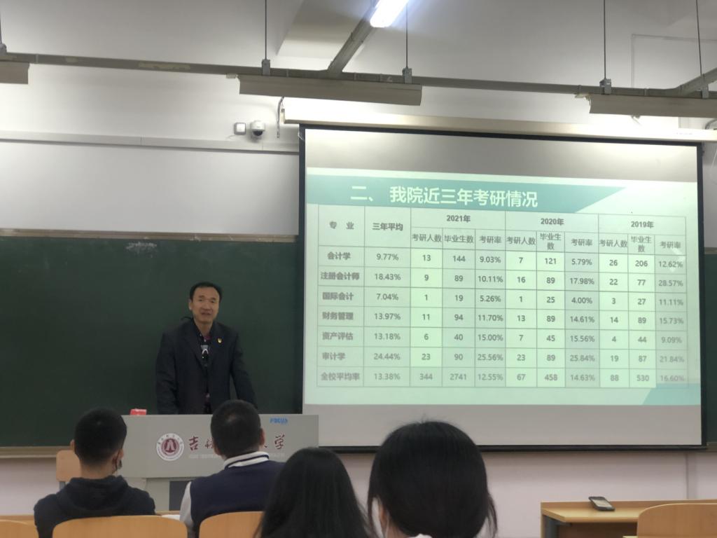 会上,首先徐老师介绍当前的就业形势,面对后疫情时代和宏观经济下行,及我国2022届毕业生将突破1000万人的双重压力的背景下,使得明年大学生就业更是“难上加难”。因此,要提前做好就业准备,提高自身就业竞争力,降低就业期望值,树立“先择业再就业”的就业观念。