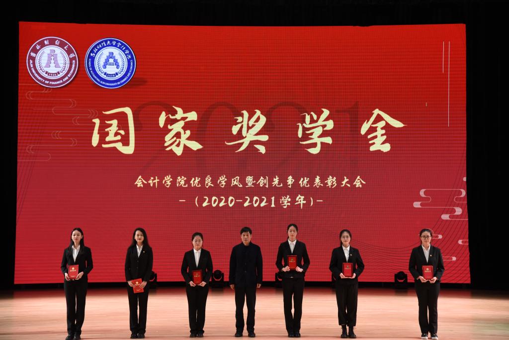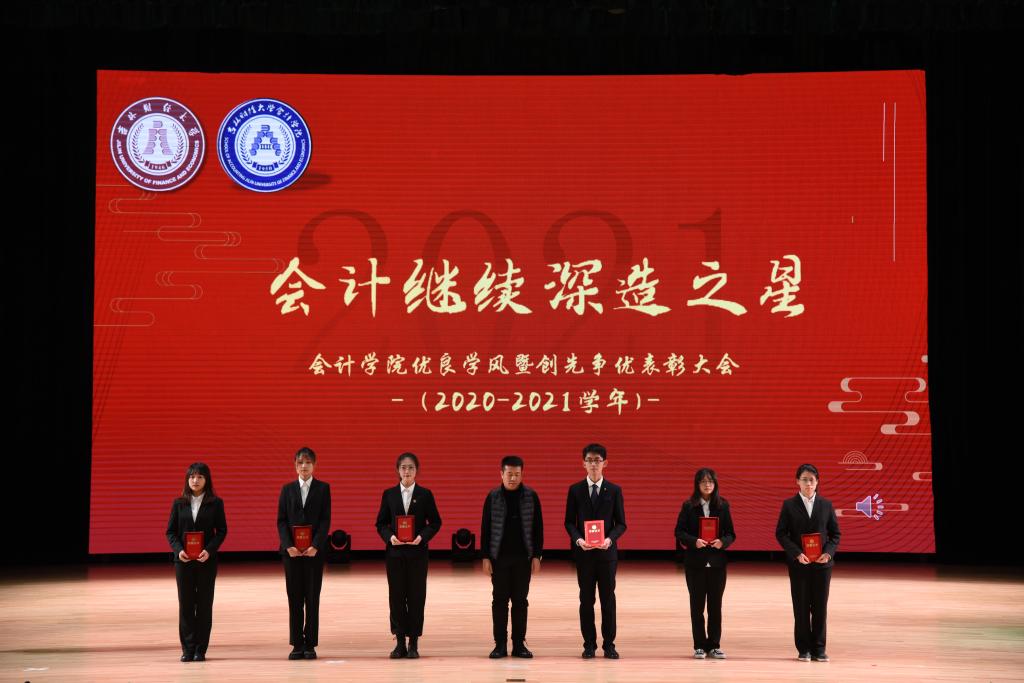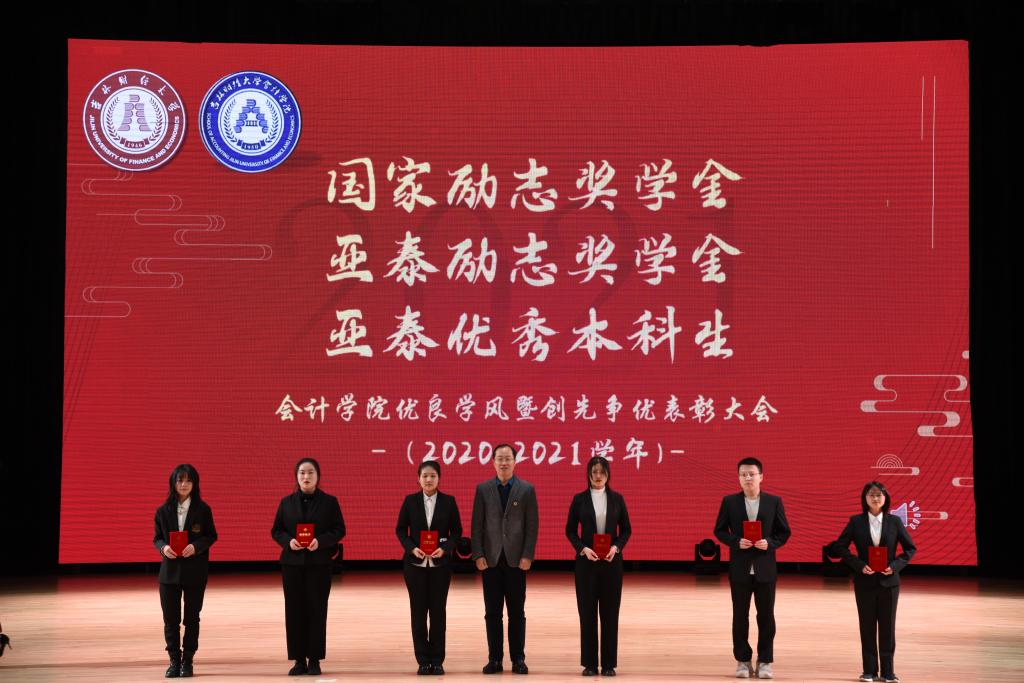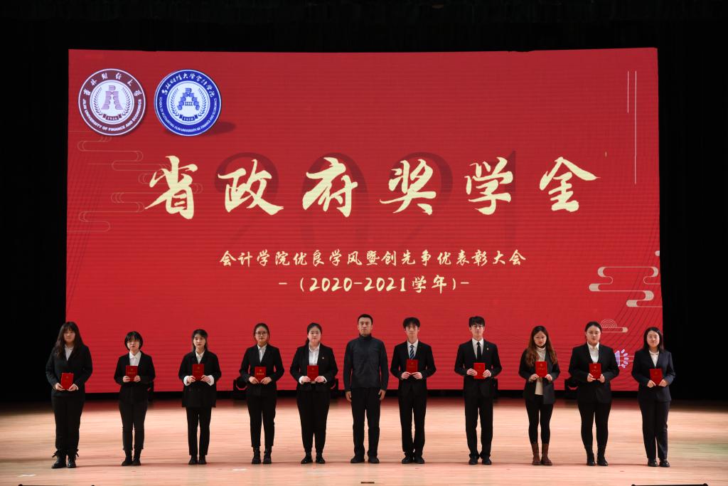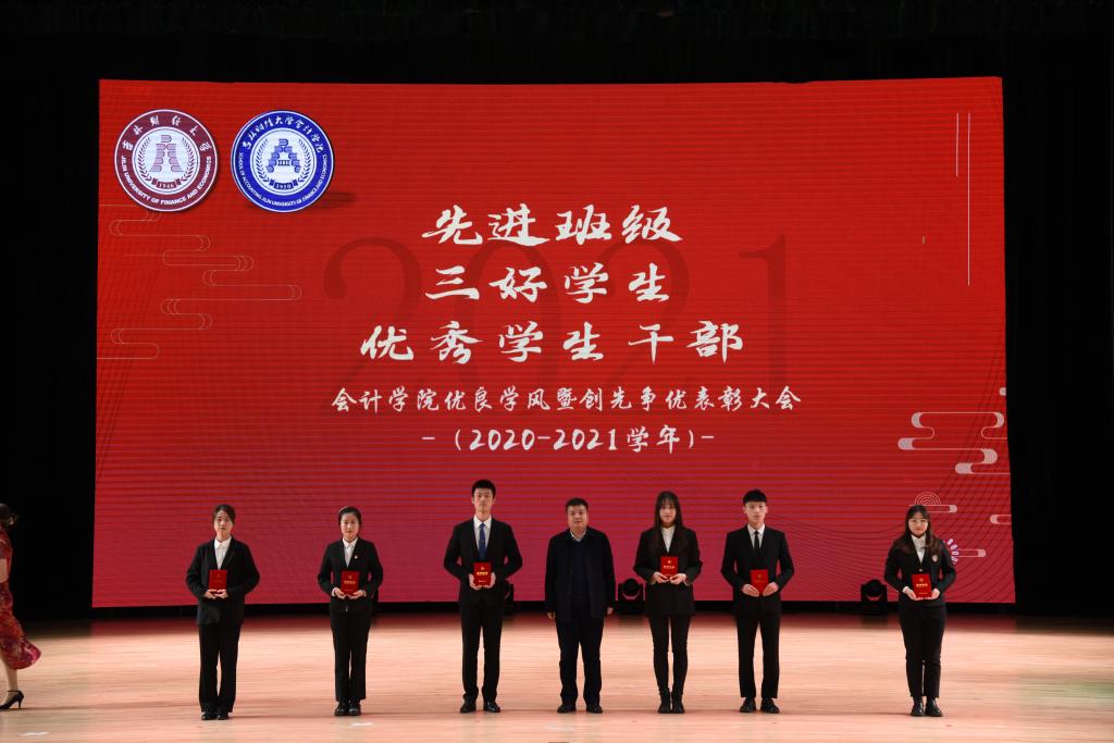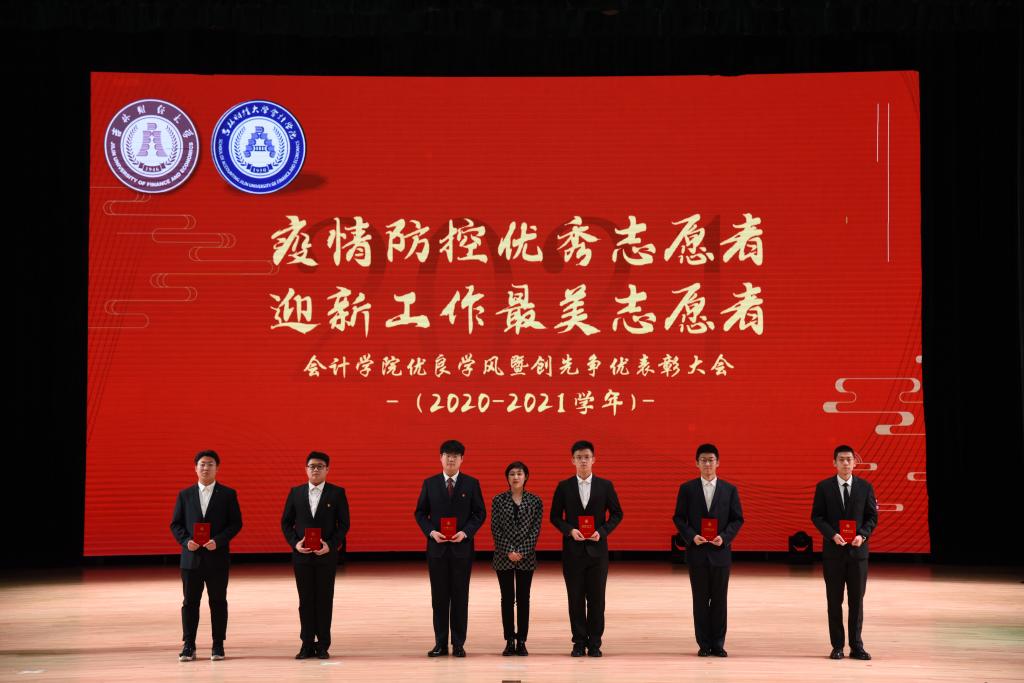 校党委副书记刘鹤向荣获“省高校辅导员年度人物提名奖”的王萌老师,“校优秀共产党员”刘静老师、“校三全育人先进个人”的时军、邵方婧老师颁发了荣誉证书。其他与会领导分别为“国家奖学金”、“国家励志奖学金”、“省政府奖学金”、“会计继续深造之星”“校三好学生”、“校优秀学生干部”、“先进班级”、“疫情防控优秀志愿者”和“迎新最美志愿者”等获奖代表颁发了荣誉证书。
