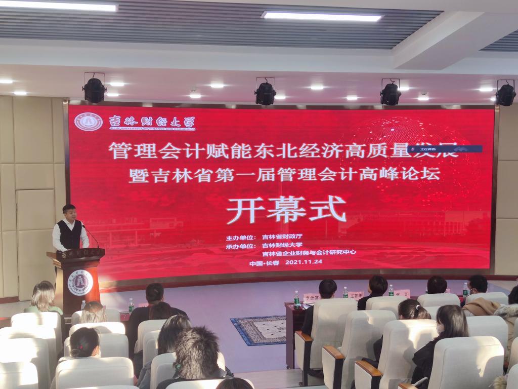11月24日,我校在第一教学楼1102学术报告厅隆重举行管理会计赋能东北经济高质量发展暨吉林省第一届管理会计高峰论坛,本次论坛由吉林省财政厅主办、91短视频 、吉林省企业财务与会计研究中心承办。出席此次论坛的嘉宾有:吉林省财政厅副厅长张言、吉林省财政厅会计处处长常忠利、吉林省会计职称考试办公室主任李少丹、清华大学经济管理学院教授于增彪(线上)、吉林敖东工业园公用资产管理有限公司常务副总经理兼财务总监孙洪成、一汽大众汽车有限公司数字化财务及财务共享服务中心项目负责人田小录、国家电网吉林电力有限公司财务处副处长孟凡媛、校副校长王菁华、91短视频 党委书记李金富、91短视频 院长梁毕明、副院长王丽南、副院长李阳,以及来自吉林省地市县财政局、吉林省企事业单位领军人才、吉林省管理会计咨询专家线上参会嘉宾共计360余人,本次论坛由91短视频 院长梁毕明主持。