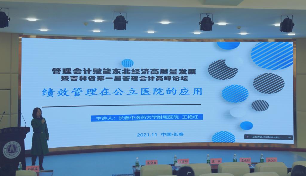 一汽大众汽车有限公司数字化财务及财务共享服务中心项目负责人田小录女士做主题为“一汽大众财务数字化转型之路财务共享服务中心建设”实务报告。田小录女士主要从一汽大众企业介绍、财务数字化转型升级、财务共享服务中心建设实践、智能技术应用实践以及财务数字化转型升级总结展望五个方面系统的介绍了一汽大众的财务数字化转型之路。报告中指出,一汽大众通过梳理战略财务、业务财务和共享财务三大业务板块,搭建财务会计和管理会计共享平台,将财务人员由核算转型到业务财务,推进实时分析和业财融合目标实现,分三步完成数字化转型。长春中医药大学附属医院党委委员王艳红教授做题为“绩效管理在公立医院的应用”实务报告。王艳红教授通过对绩效管理的研究背景、绩效管理的应用效果、绩效管理的经验总结等方面系统阐述了绩效管理在公立医院中的应用。王艳红教授首先从宏观与微观两个层面分别指出了管理会计对于处于医疗制度改革下的公共医疗行业的迫切需要。财政部门补偿机制不完善、政府定价导致的医疗成本的上升以及医疗运营管理模式的问题都迫使公共医疗对绩效管理进行改革。王艳红教授就长春中医药大学附属医院绩效管理分配方案的设计进行了主要介绍,分享了引进RBRVS积分模式的绩效分配,建立考核指标、运用目标管理法、落实全面预算等方式设计,使得医院的运营效率和医疗质量大幅提升,经济效益和社会效益同增长等应用效果。