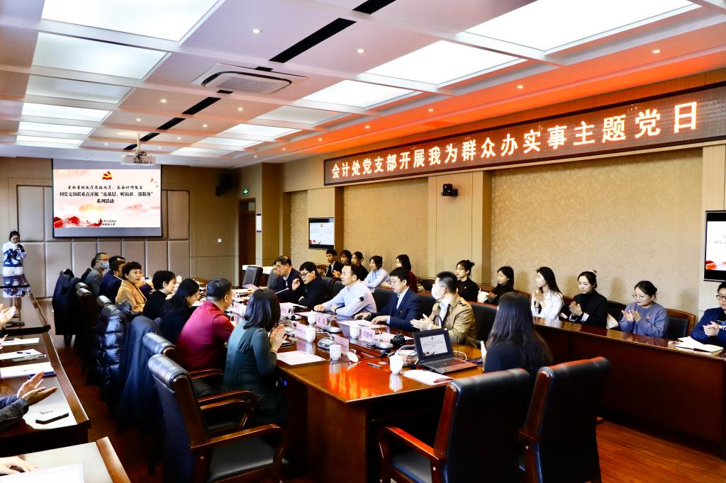 在全党上下认真学习党的十九届六中全会精神之际,2021年11月24日上午在校综合楼第二会议室,省财政厅党组成员、总会计师张言带领会计处(会考办)党支部成员与91短视频 2020级研究生学生党支部联系点开展“走基层、听诉求、强服务”活动。省财政厅会计处党支部书记、处长常忠利,支部纪检委员、会考办主任李少丹,副处长王培伦、倪娜等,91短视频 校党委副书记岳宏,校党委常委、组织部部长李栋栋,91短视频 院长梁毕明、党委副书记徐克哲、团委书记王萌及部分学生党员参加了本次活动。会议由91短视频 党委书记李金富主持。
