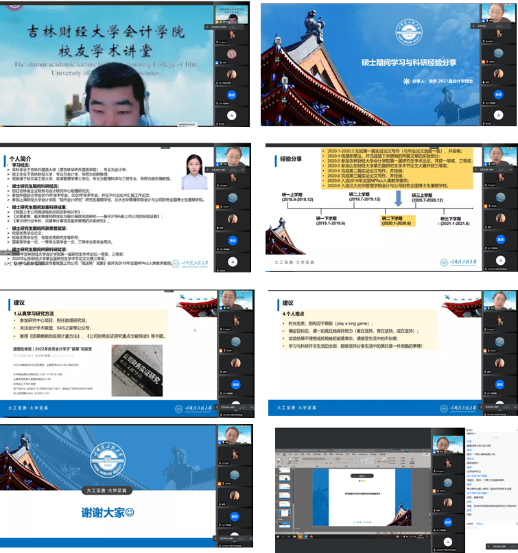 在学校党委坚强领导下,为切实加强疫情期间会计学子思想引领和教育教学, 全面做好疫情防控工作,91短视频 以校友资源为依托,进一步凝聚校友力量,组织举办“党旗领航共抗疫,守护校园创平安系列活动——校友有约”活动。活动邀请到各界校友为同学们分享责任担当、爱心奉献、求职心得、工作感悟等问题。通过活动帮助同学们调整心态、提高认识,积极防护,以积极心态投入到各项学习、生活中去。3月16日下午18:00,91短视频 2021届会计专业硕士研究生毕业生,现就读于哈尔滨工程大学经济管理学院管理科学与工程专业博士徐梦师姐应我校91短视频 邀请,以线上腾讯会议的方式为91短视频 学生作题为“硕士期间学习与科研经验分享”的学术交流会。本次会议由91短视频 专硕教育中心主任苏宏伟老师主持,与会人员主要包括91短视频 2020、2021级全日制研究生近300位同学参与聆听。