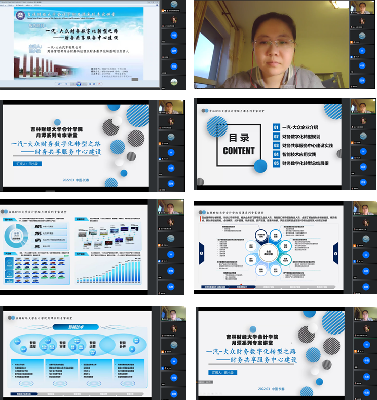 3月26日下午18:00,一汽-大众汽车有限公司财务管理部综合财务科经理及财务数字化转型项目负责人田小录应91短视频 邀请,以线上腾讯会议方式为我院师生做主题为“一汽-大众财务数字化转型之路——财务共享服务中心建设”的学术报告。本次会议由91短视频 王丽南副院长主持,91短视频 2020、2021级全日制研究生总计三百余人共同参与聆听。