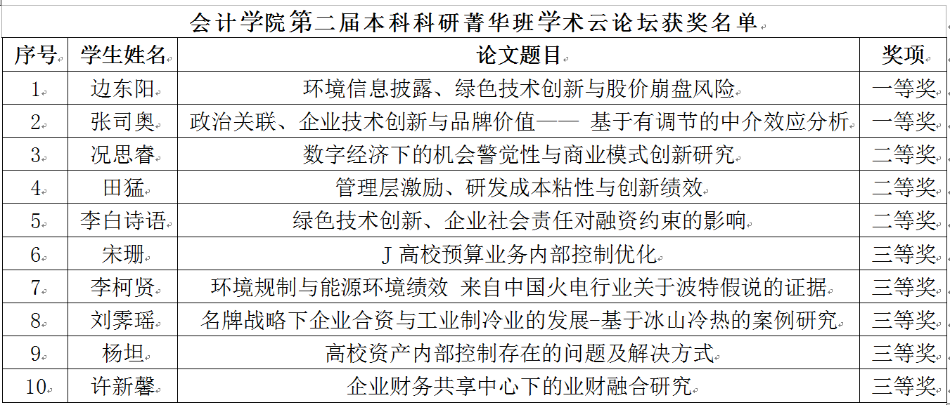 91短视频 此次举办的第二届本科生科研菁华班学术云论坛是从2021年12月6日开始征集参会论文,历时4个多月,共收到参会论文17篇。经过学院匿名评审,最终筛选出投稿论文总量的60%(10篇论文)进行交流汇报。学术论坛交流中,91短视频 三位青年博士教师作为评委现场打分,最终评选出一等奖2名、二等奖3名、三等奖5名。
