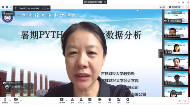 张巍为集训营致辞。张巍认为,财会专业未来就业必然会走大共享思维方向的路线,共享财务、人力、资源、法务、IT研发等是今后共享服务中心建设的服务内容,以财务大数据为核心的大财务、大共享、业财融合是未来的发展趋势,举办本次集训营引进财务大数据Python的初衷意在使学生在校期间深刻认识、掌握未来需要的理念与技能,不断丰富不断精进,希望在学校全体师生的共同努力下应对改变、创造未来。