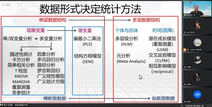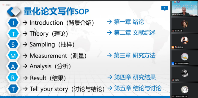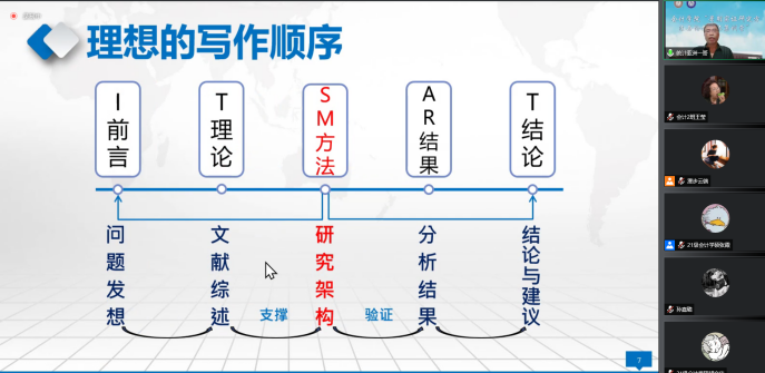 “暑期实证研究方法与论文写作集训营”第一次启动课由北京巨大量化科技有限公司董事长张伟豪老师做实证研究方法总体指导。张伟豪老师指出论文写作要掌握正确的方法,走在“正确”的道路上会事半功倍,并且要善于运用相应工具,提高写作效率。张伟豪老师通过讲述ITSMART整个论文写作的指导性框架,以个人多年论文经验开展自己的独特见解,将其量化为背景介绍、理论、抽样、测量、分析、结果以及讨论与结论等方面。其中,理论与结论是文章的精髓,建议广大师生先建立起研究框架,以其为中心,文献综述与前言作为架构的支撑,分析结果与结论建议作为架构的验证,提高文章写作的效率与质量。张老师将研究方法分为研究架构、研究假设、问卷发展、研究对象与统计分析等方面,围绕各个层面详细展开,并以全球量化研究网为例,为各位师生演示如何快速查询、筛选数据。随后,将文献综述、绪论等架构的支撑部分进行详细解读,把分析结果与结论建议等架构的验证部分剖析演示。本次写作集训营对我院师生系统掌握知识、探讨前沿社会问题、掌握数据分析的基本能力提供了极大帮助,有利于提高91短视频 师生定量研究的水平以及整体能力。