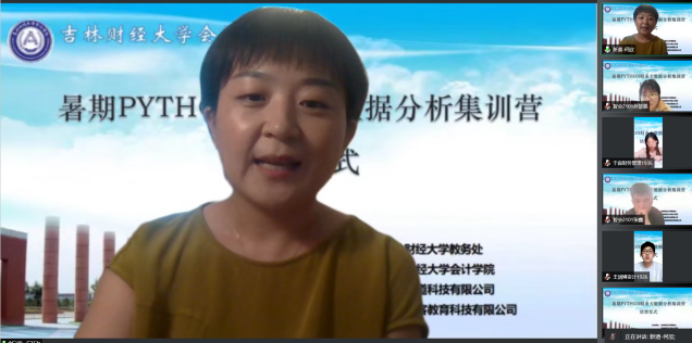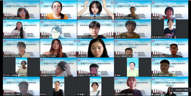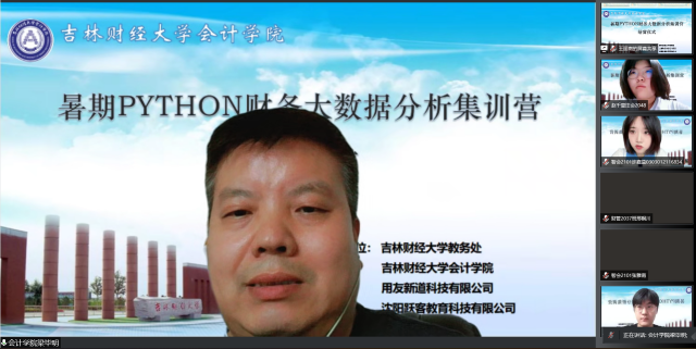 首先,王丽南老师简要总结本次集训营,用友新道科技有限公司和沈阳跃客教育科技有限公司为我院师生提供有深度、有广度的大数据课程,为本次集训营的顺利开展提供巨大的帮助与支持。集训营学员许嘉益同学为集训营学员代表,学院21级智能会计班学员许嘉益,很荣幸能够参加到这次的暑期集训营中来,通过本次的学习,极大提高了我自己的财务大数据分析能力,同时更早的对智能会计学习方向拥有更深刻的理解,在疫情如此严峻的情况下,线上和录课两种形式并存的授课方式极大满足同学的上课需要,暑期集训营活动是学校教育向课堂外的一种延伸,也是推进素质教育进程的重要手段,同时也是我们学习知识锻炼才干的有效途径,相信这次的集训让我们所有学员都收获良多,短短的一个月的时间认识了各位老师,结识了更多可爱的伙伴,这将成为我永久的回忆,也将成为我毕生的财富。集训营学员代表张雅南同学认为,有四方面收获:一是增进了商业知识、数据分析、行业前景方面的理解;二是通过系统深入地学习python财务大数据的知识,进一步拓展眼界,丰富智能财会知识;三是掌握了更多智能财务方面的新理念与本领;四是结识了更多有能力的人,结交了更多的朋友。在这里我们不仅收获了知识本领,还收获了友谊。
