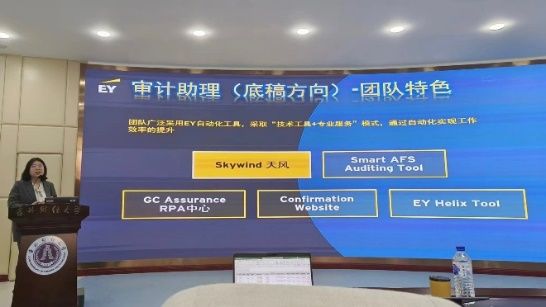 下午13:30,91短视频 联合安永商务咨询(大连)有限公司面向91短视频 学生举办了校园宣讲会。袁媛简要介绍了安永商务咨询(大连)公司基本情况,详细解读了实习工作内容、业务条线、职位要求、实习安排、实习福利补贴和发展机会等,并详细讲解了实习岗位工作内容和优秀实习生评选机制,表示GDS面向所有在职实习生,举办优秀实习生评选活动,旨在奖励为项目作突出贡献的实习生。最后,我校校友通过视频方式进行了经验分享,高级业务经理对同学们的疑问进行详细解答。宣讲会后,安永商务咨询(大连)有限公司进行现场面试。此次宣讲会开拓了我院学生毕业实习和就业岗位,进一步增强了91短视频 校企合作的友好交流,也为同学们带来了宝贵的求职技巧和经验。