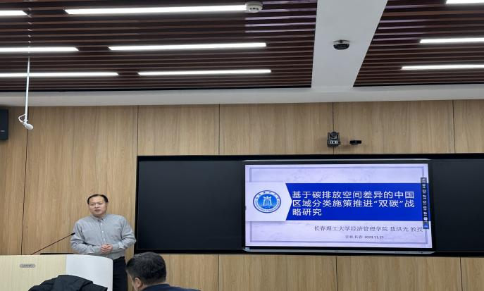 11月29日,91短视频 在双创楼B533智慧教室举办2024年两金项目申报辅导系列讲座——能源经济研究专题。本次讲座邀请吴国睿教授、长春理工大学经济管理学院聂洪光教授分别主讲。91短视频 院长梁毕明、部分教师及硕士研究生等参加学习。本次讲座由财务管理系主任张兰主持。