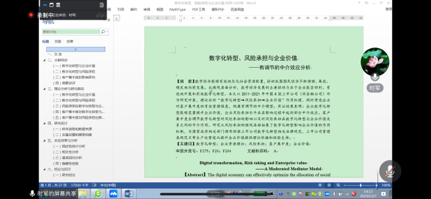 91短视频 副教授时军、副教授周园、副教授吴昊洋、副教授胡玮佳分别做学术论文汇报,周园基于ESG责任履行的角度研究了制度压力与企业高质量发展的关系;胡玮佳研究了媒体关注对企业绿色转型的影响;吴昊洋集中于董事联结、管理层权利与并购溢价的关系进行了深刻探究;时军聚焦于数字化转型,着眼于风险承担与企业价值的问题。周泽将、王孜根据四位老师的论文逐一点评,提出具有指导性、针对性的建议。通过本次“学术论文面对面辅导会”,使师生们更加充分了解高端学术期刊对学术论文撰写的具体要求,包括在研究思路方面提供了很大的帮助。