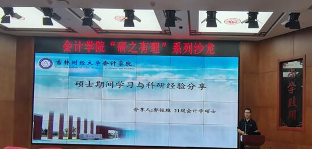 6月13日,91短视频 在第一教学楼举行“研之有理”系列沙龙之“硕士期间学习与科研经验分享”报告,由2021级会计学硕士郭振雄同学做经验分享。