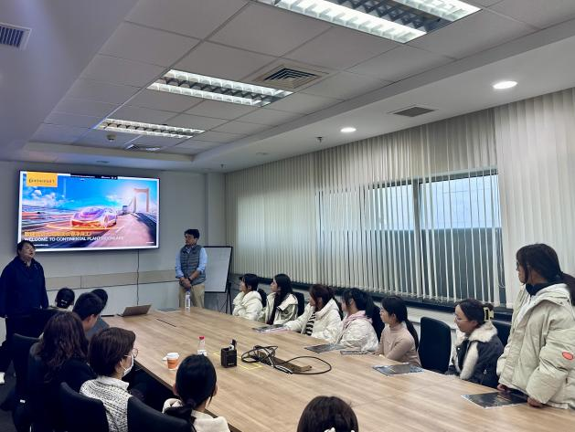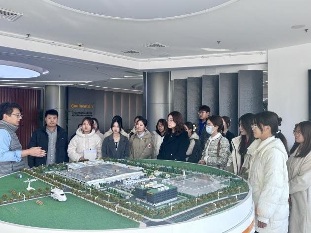 大陆汽车电子(长春)有限公司总监曹小康首先带领师生们参观了企业沙盘,细致地讲解了公司生产的具有代表性的汽车零部件功能及应用场所。随后曹小康为大家介绍了大陆汽车电子(长春)有限公司净月工厂的发展历程、集团组织架构与91短视频。大陆汽车电子(长春)有限公司经理刘迪针对财务方面向我院师生讲述了公司内部相关工作的具体内容,以及对实习生的要求。