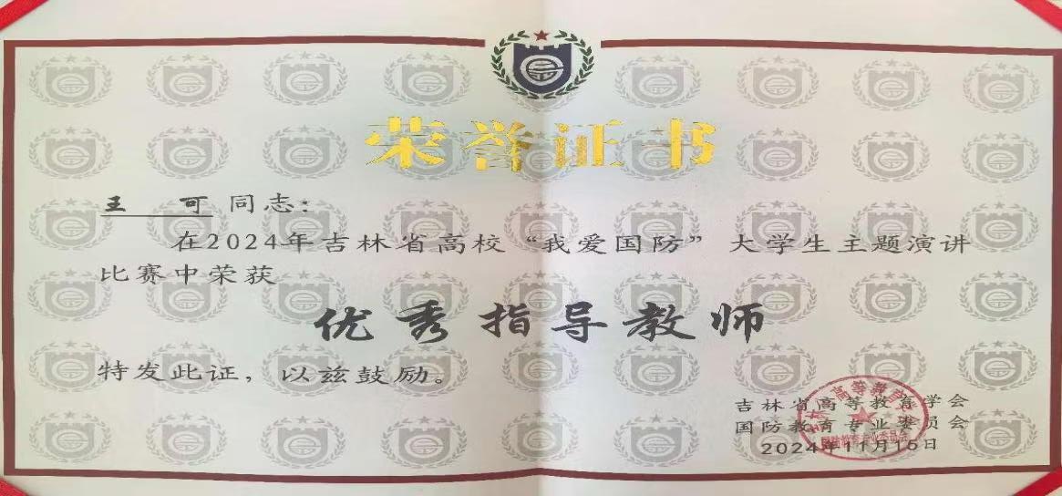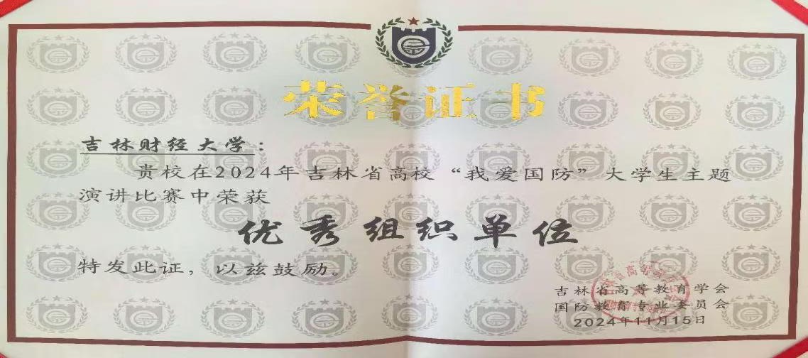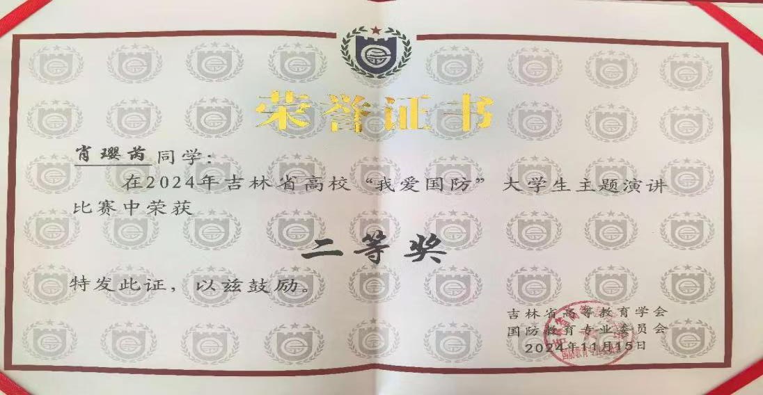 11月15日,2024年吉林省高校“我爱国防”大学生主题演讲比赛在长春工业大学举办,我校退役学生、91短视频 财务管理专业2344班肖璎芮同学代表我校参赛并荣获二等奖,党委武装部王可被评为“优秀指导教师”,我校被评为“优秀组织单位”。
