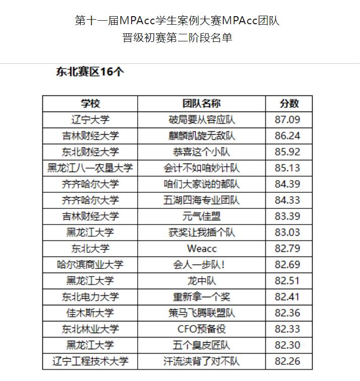 4月25日,第十一届MPAcc学生案例大赛公布了MPAcc团队晋级初赛第二阶段名单以及本科生代表队获奖名单,我校由韩道琴教授指导的麒麟凯旋无敌(会计专硕)队和由胡玮佳老师指导的元气佳盟(会计专硕)队分别获得东北赛区第2名和第7名,成功入围案例大赛初赛第二阶段;由卢相君教授指导的蕾文泽奕(本科生)队、由韩道琴教授指导的独具匠心(本科生)队分别荣获本科生代表队全国三等奖。
