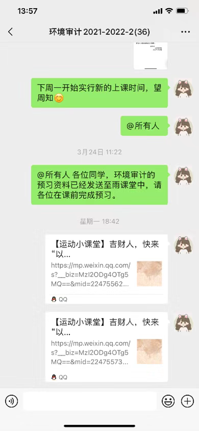 通过“课前五分钟抗疫精神宣讲”活动向同学们传递科学抗疫知识,促使学生增强自我防护意识,落实自我防护措施。引导学生牢固树立预防为主、健康第一的观念,在日常生活学习中养成良好的卫生习惯和生活习惯,自觉加强体育锻炼,增强自身免疫力。向同学们推送适宜在寝室完成的瑜伽、高抬腿练习、改善体态课间操等教学视频,鼓励同学们在不影响他人休息的情况下加强体育锻炼。关注毕业生论文进展和实习情况,及时对毕业生实习情况进行跟踪管理,叮嘱学生特殊时期校外实习注意自身防护。注重学生心理疏导,面对突如其来的重大疫情,大学生缺乏足够的生活阅历和必要的心理准备,难免会产生恐慌情绪和心理压力,通过《疫情之下的心理与健康》系列公开课程,引导学生开展认知调节,消除因疫情引发的认知偏差,保持积极健康的心态,正确面对疫情,消除恐慌感,减轻心理压力和负担。积极与学生沟通,了解其学习生活方面是否有问题,让同学们知道他们不是一个人在战斗,学校和老师永远是同学们最坚实的后盾。